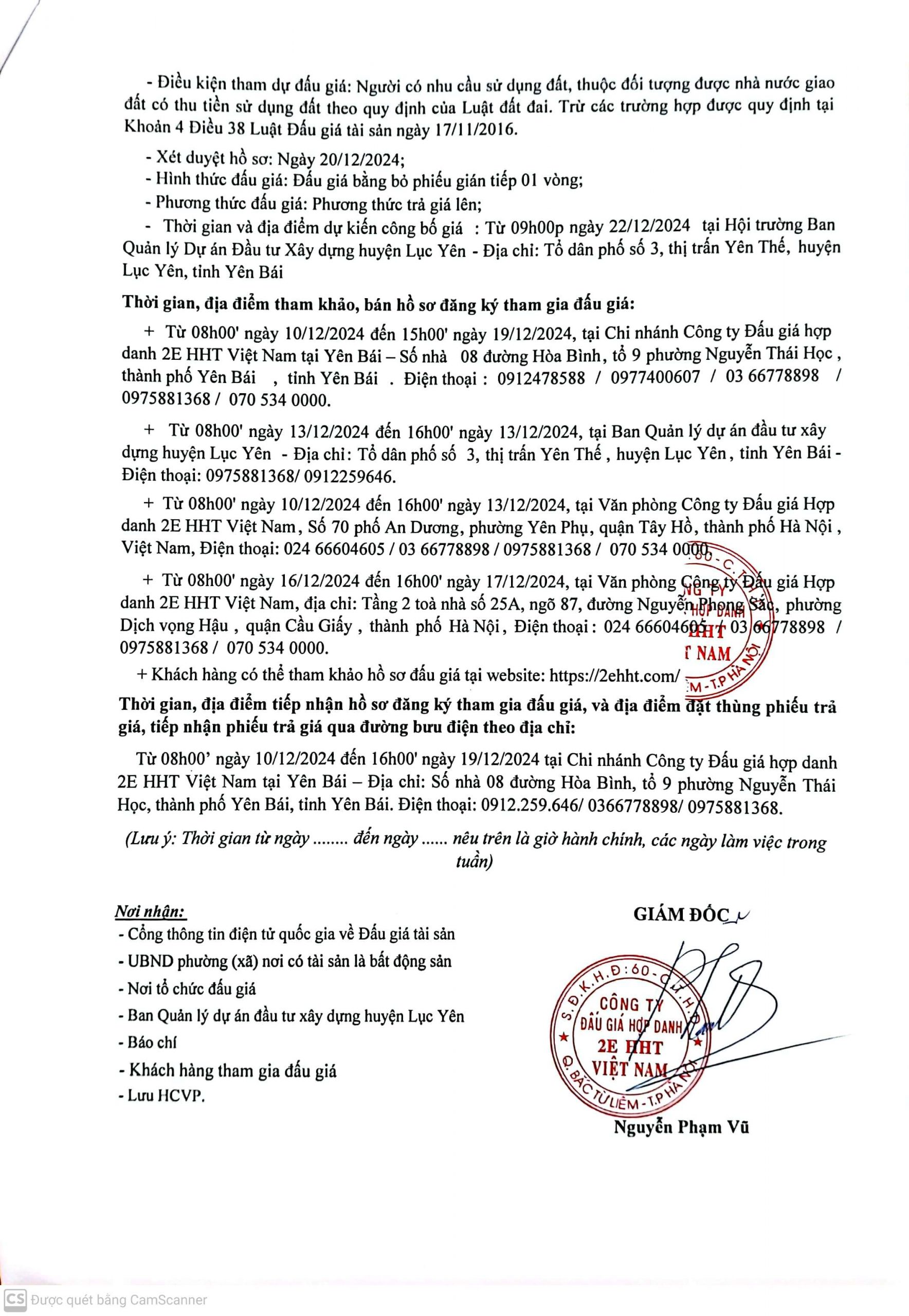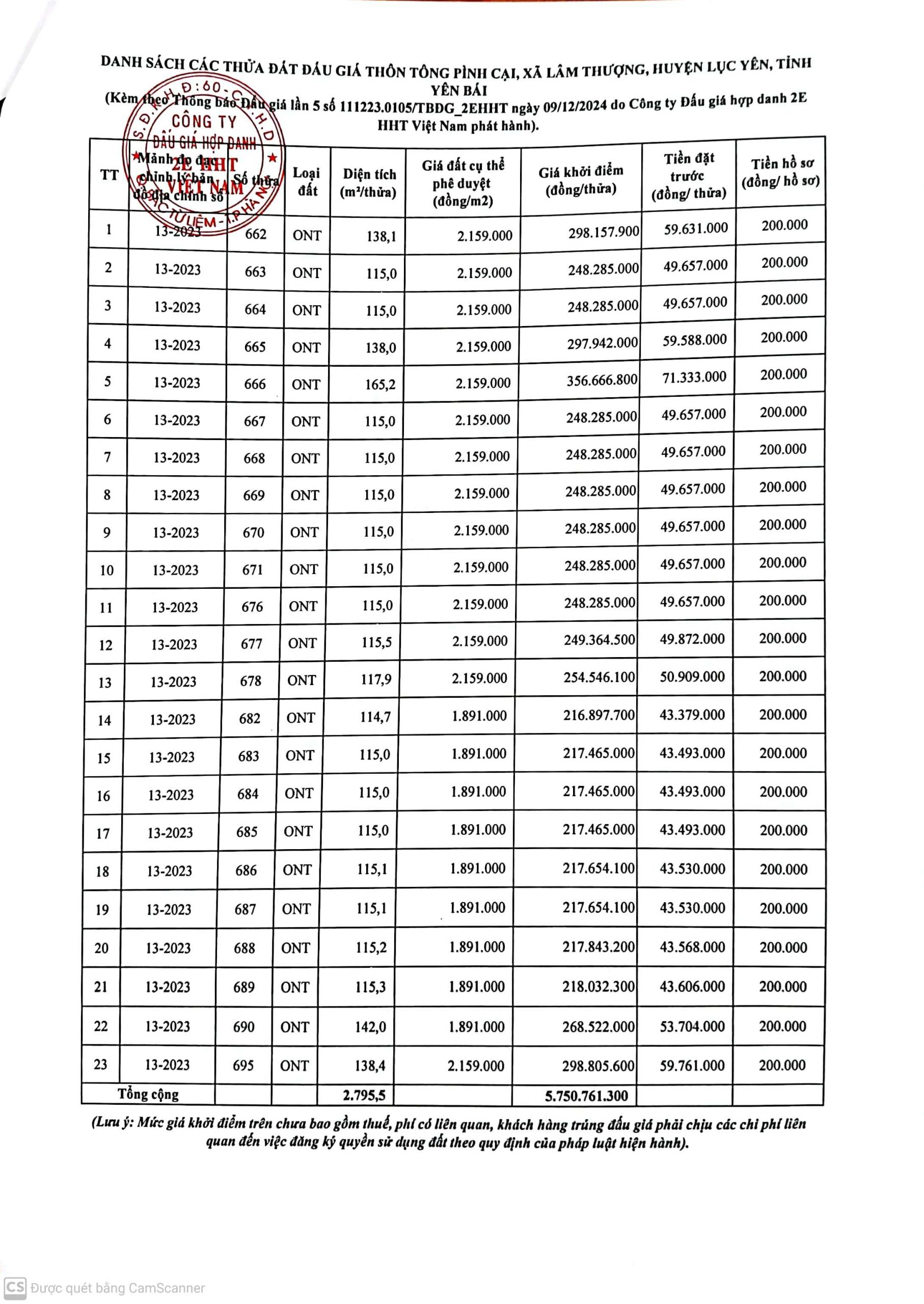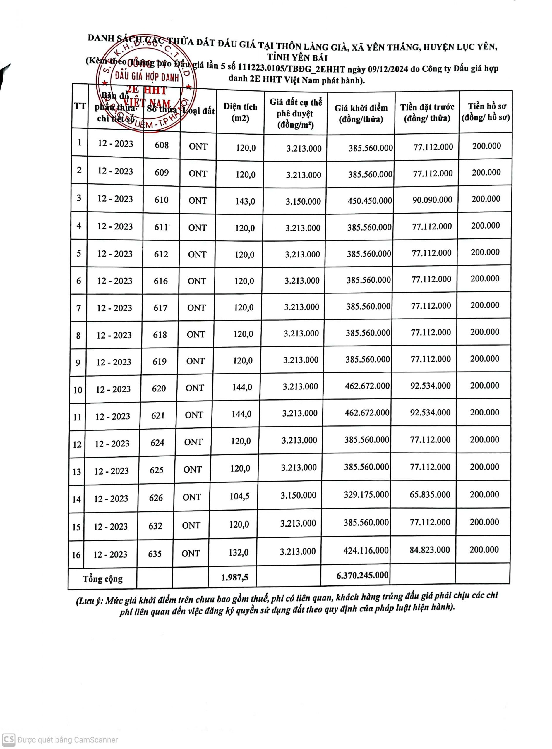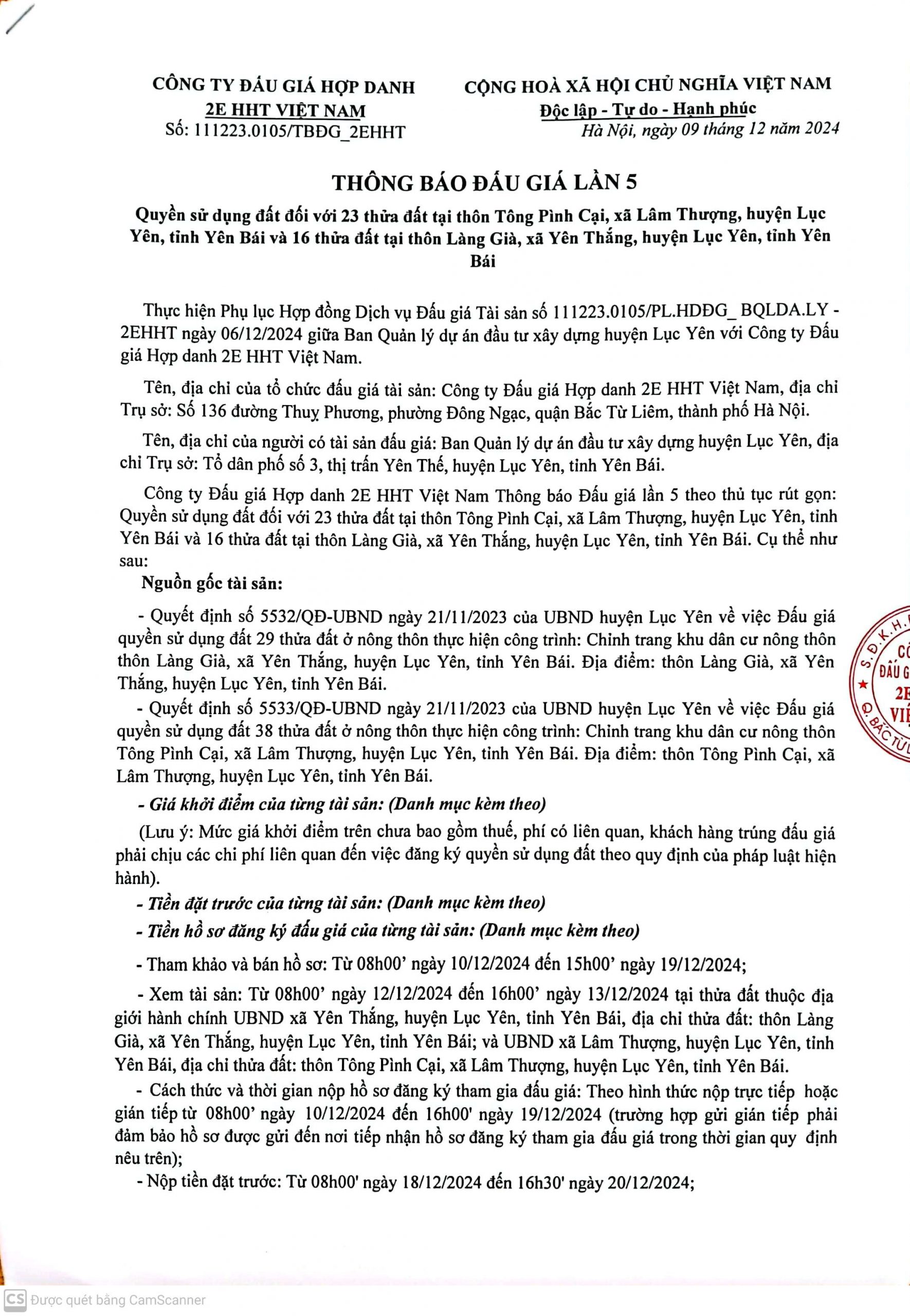 Công ty đấu giá hợp danh 2EHHT Việt Nam Thông báo đấu giá: Quyền sử dụng đất đối với 23 thửa đất tại thôn Tông Pình Cại, xã Lâm Thượng, huyện Lục Yên, tỉnh Yên Bái và 16 thửa đất tại thôn Làng Già, xã Yên Thắng, huyện Lục Yên, tỉnh Yên Bái
