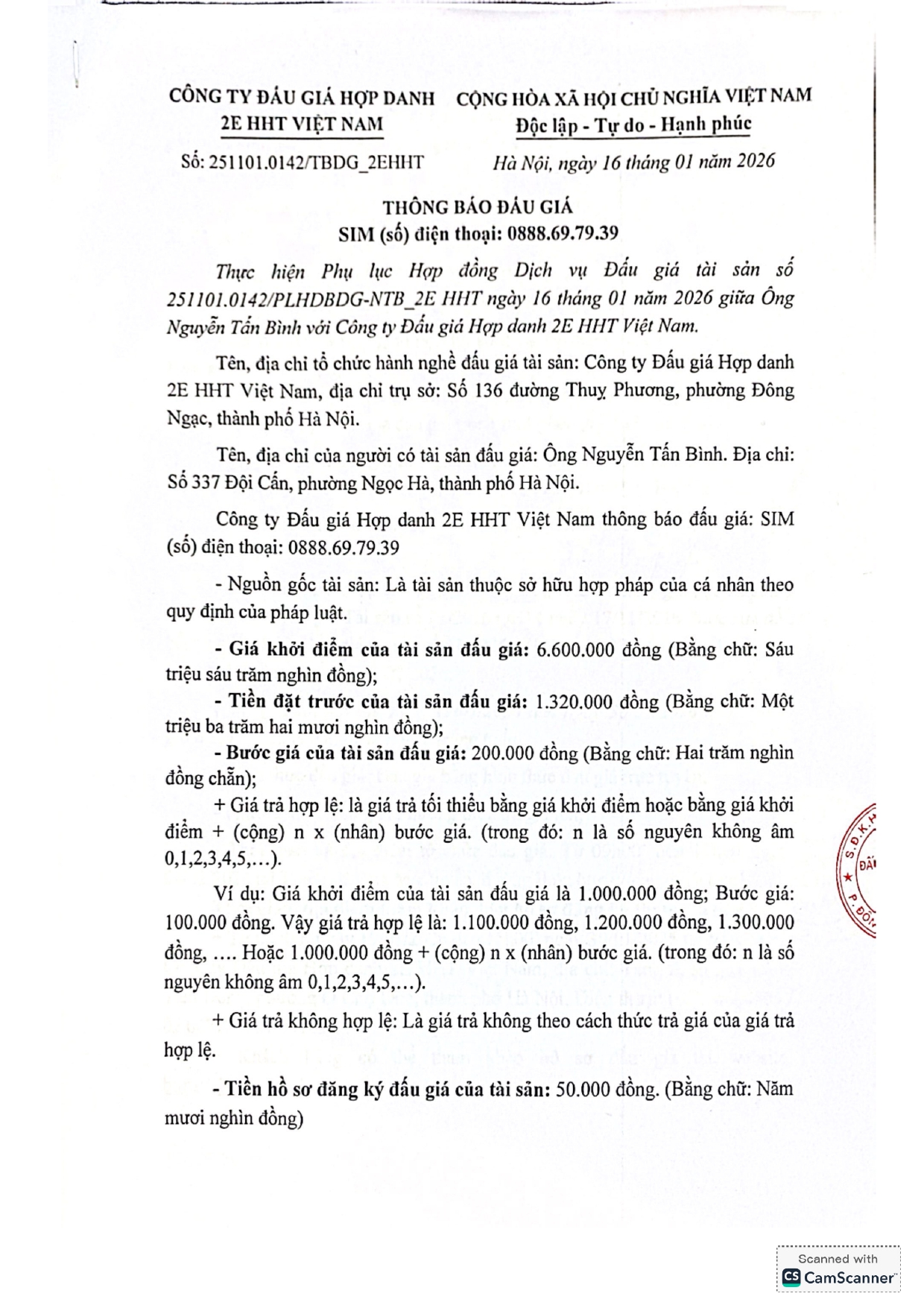 Công ty đấu giá hợp danh 2EHHT Việt Nam Thông báo đấu giá: SIM (số) điện thoại: 0888.69.79.39